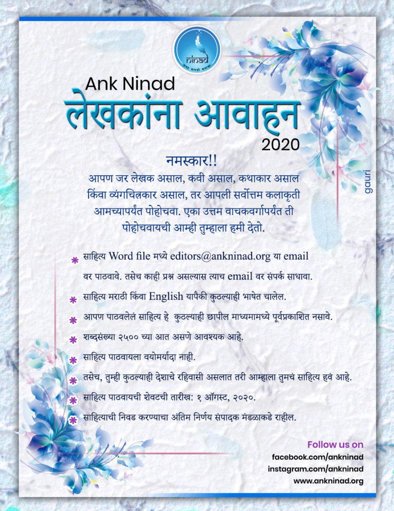 - साहित्य पाठवायची शेवटची तारीख: १ ऑगस्ट, २०२०.